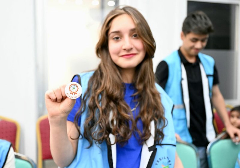Yeşilyurt Belediye Başkanı Prof.Dr.İlhan Geçit, konuşmasından sonra öğrencilerinin yakalarına ‘İyilik Elçisi’ rozetlerini taktı.