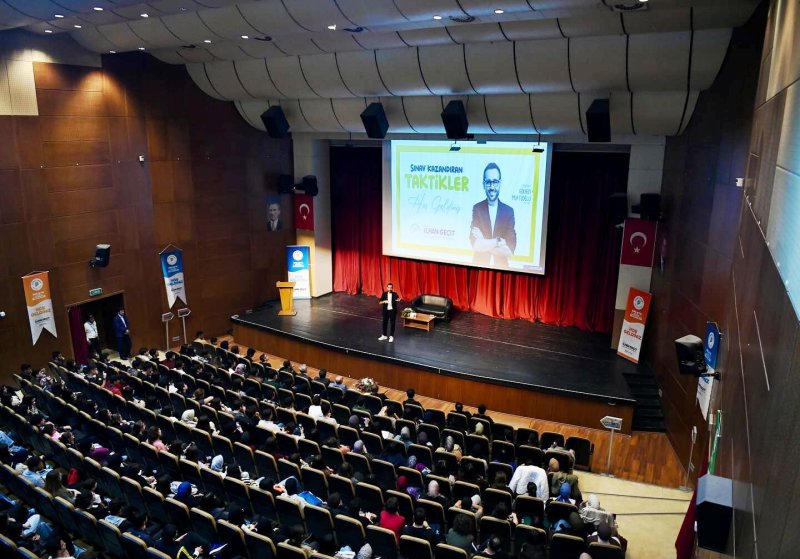 Salonun tıklım tıklım dolduğu seminere konuşmacı olarak katılan Eğitimci-Yazar Gökhan Müftüoğlu, sınavlara hazırlık süreci, stresle baş etme yöntemleri, zamanın verimli değerlendirilmesi ve etkili çalışma yöntemleri gibi pek çok konuya ilişkin öğrencilere tavsiyelerde bulundu. Gökhan Müftüoğlu’nun etkileyici sunumu eşliğinde anlattığı başarı, motivasyon ve odak oluşturmaya dair konular katılımcılar tarafından dikkatlice takip edildi.