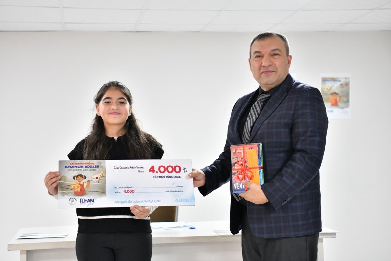 Yeşilyurt Belediyesi ile Yeşilyurt İlçe Milli Eğitim Müdürlüğü işbirliğiyle; 20 Kasım Dünya Çocuk Hakları Gününde başlatılıp, 10 Aralık Dünya İnsan Hakları Gününde tamamlanan “Savaşın Karanlığına Aydınlık Sözler” temalı Savaş Çocuklarına Mektup Yarışmasında dereceye giren öğrencilerin ödülleri takdim edildi.