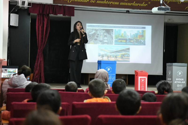 ‘Sıfır Atık ve Çevre Bilinci’ Eğitimlerine devam eden Yeşilyurt Belediyesi İklim Değişikliği ve Sıfır Atık Müdürlüğü, geri kazanım, su kirliliği, hava kirliliği, iklim değişikliği, enerji tasarrufu ve alınması gereken önlemler gibi birçok konuda bilgilendirme yapılarak öğrencilerin çevre bilinci kazanmalarına katkı sunuyor.